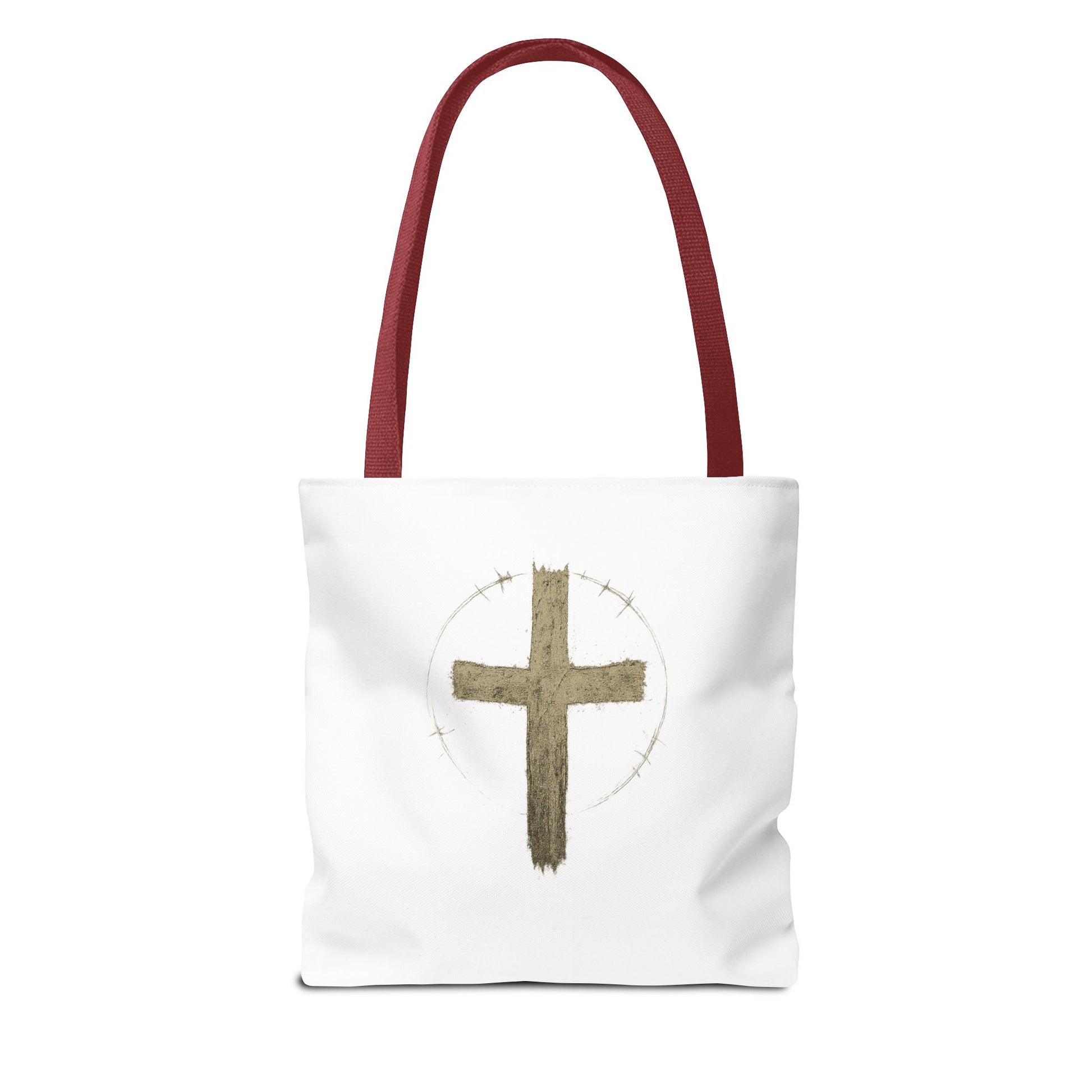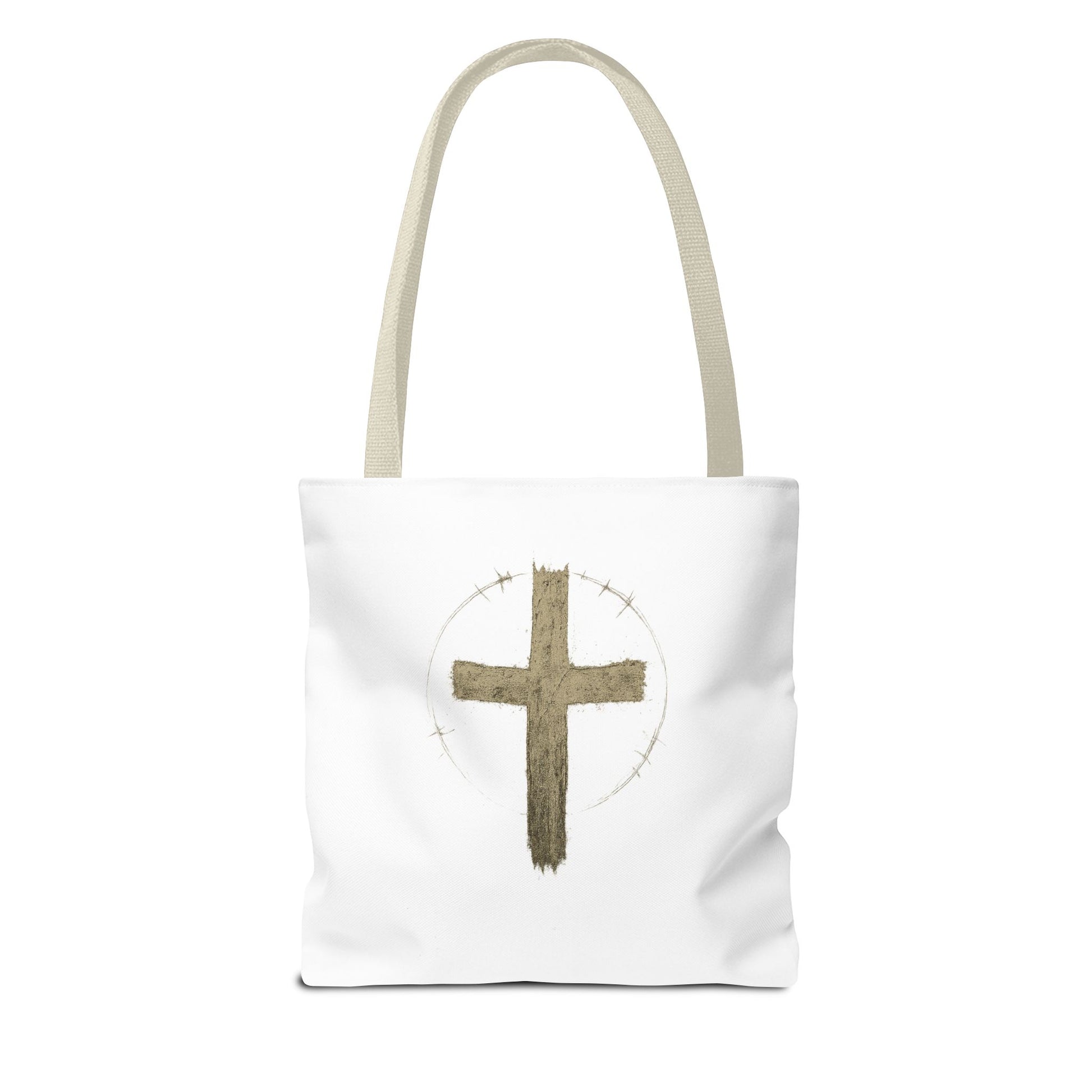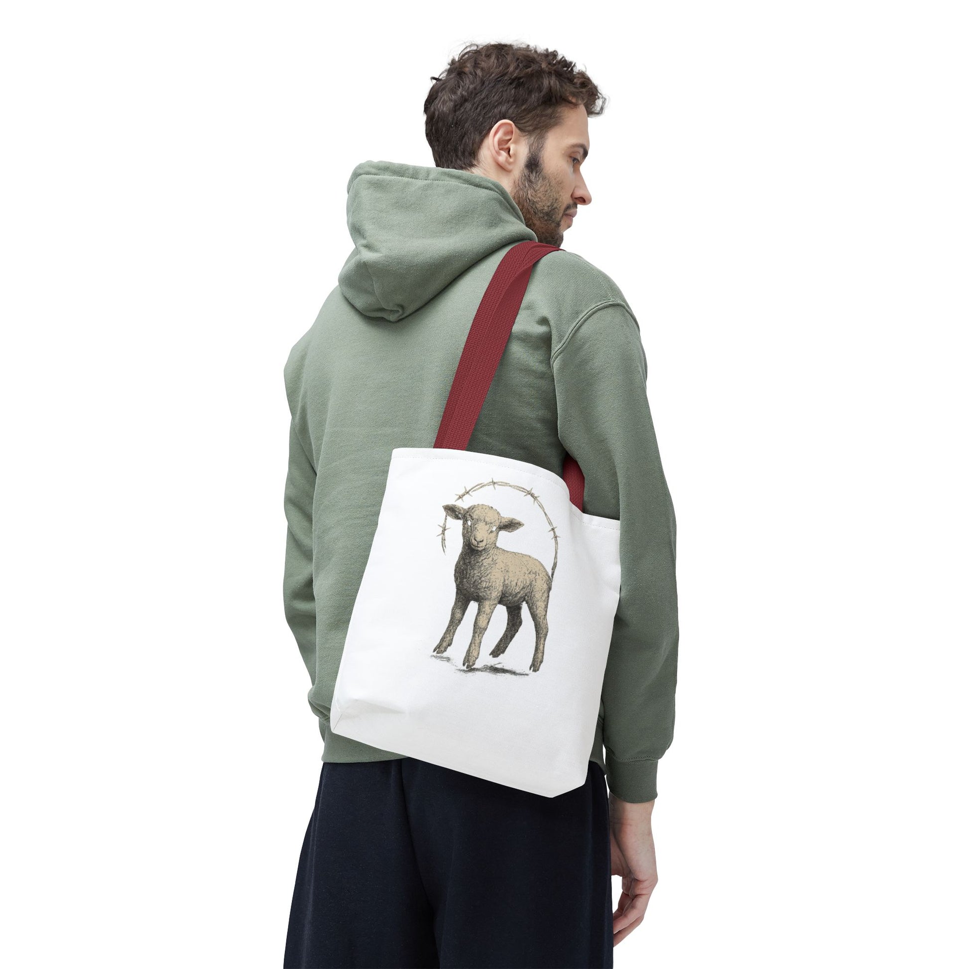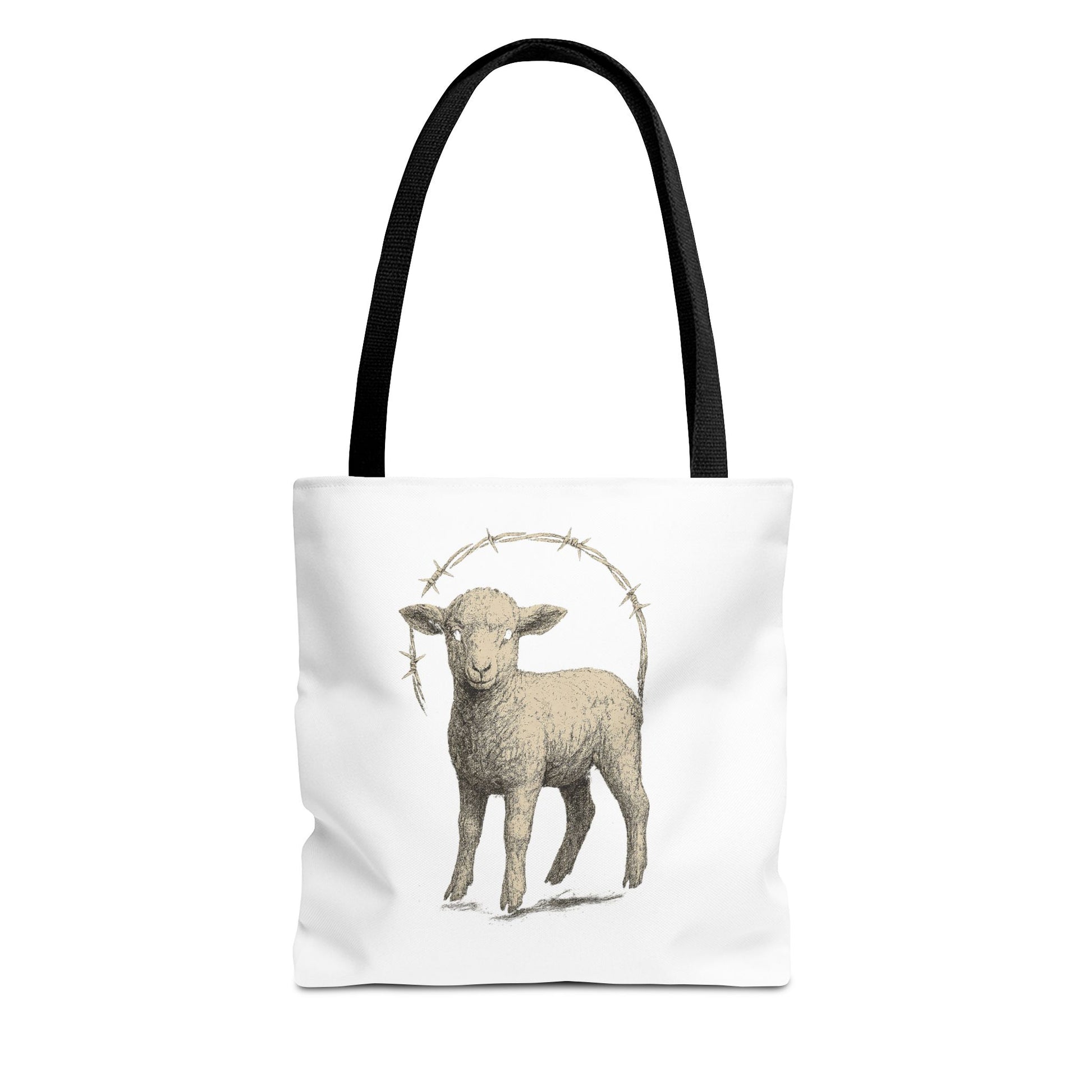 Religious Tote Bag with Sheep Design, Christian Tote, Cross Print Bag, Faith-Inspired Carryall, Unique Church Bag, Spiritual Gift